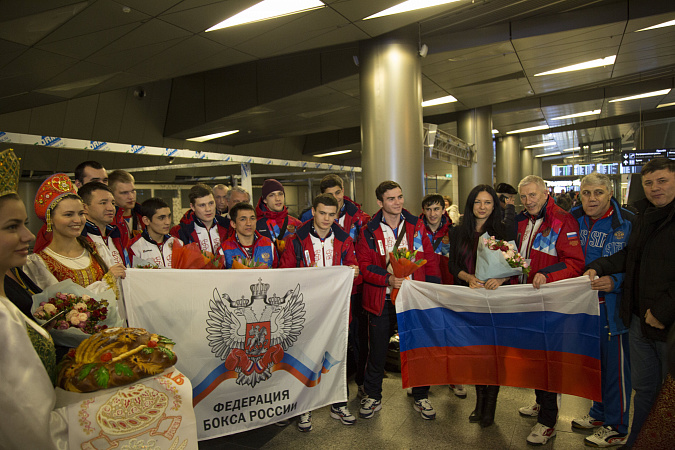 Сборную команду России по боксу торжественно встретили в аэропорту