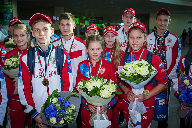 Триумфаторов первенства Европы по боксу среди юношей и девочек встретили с наградами в аэропорту