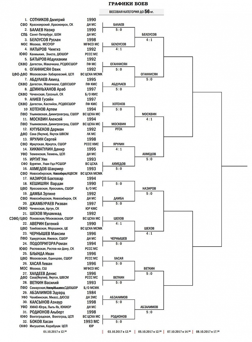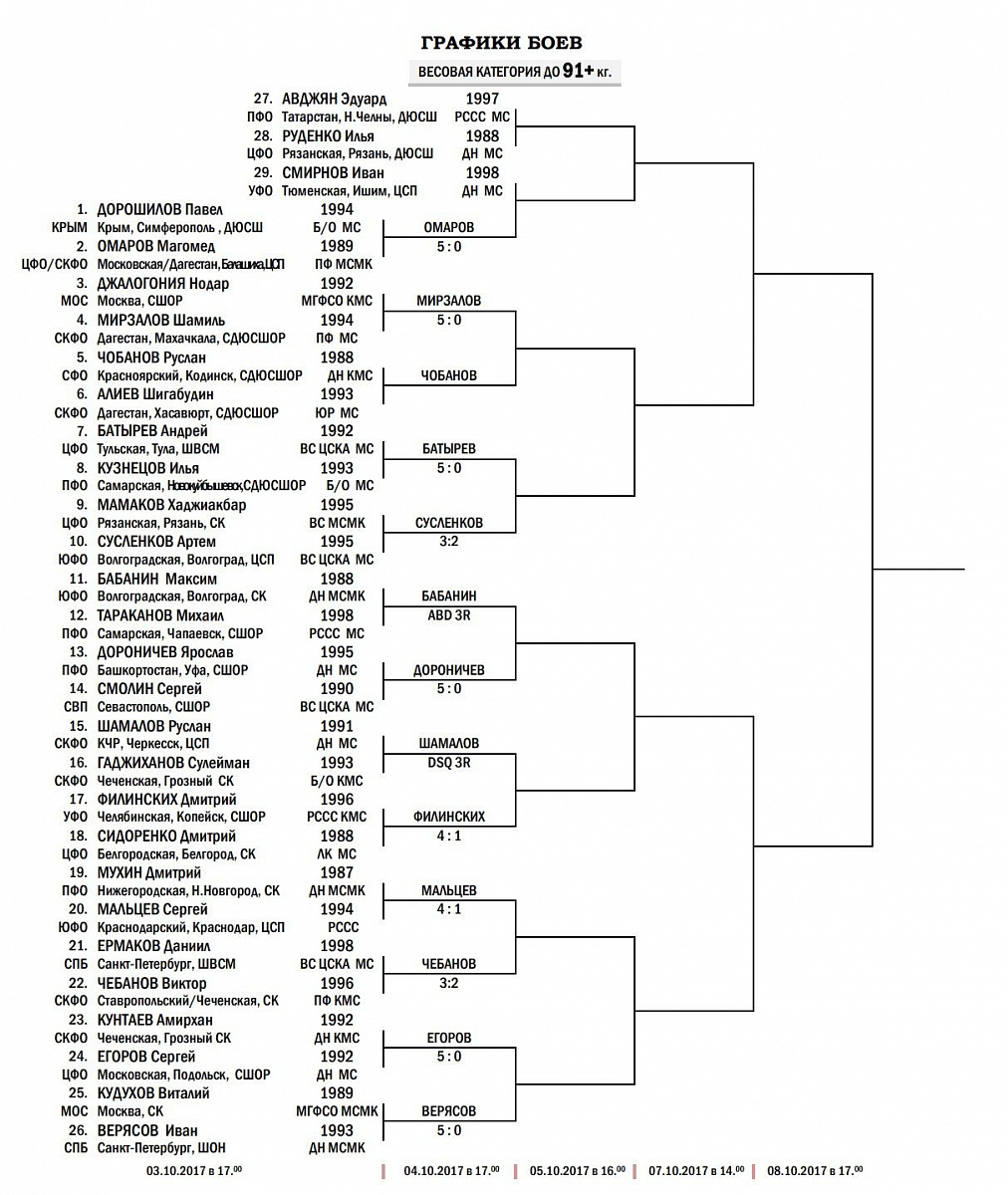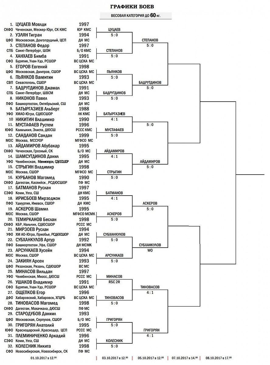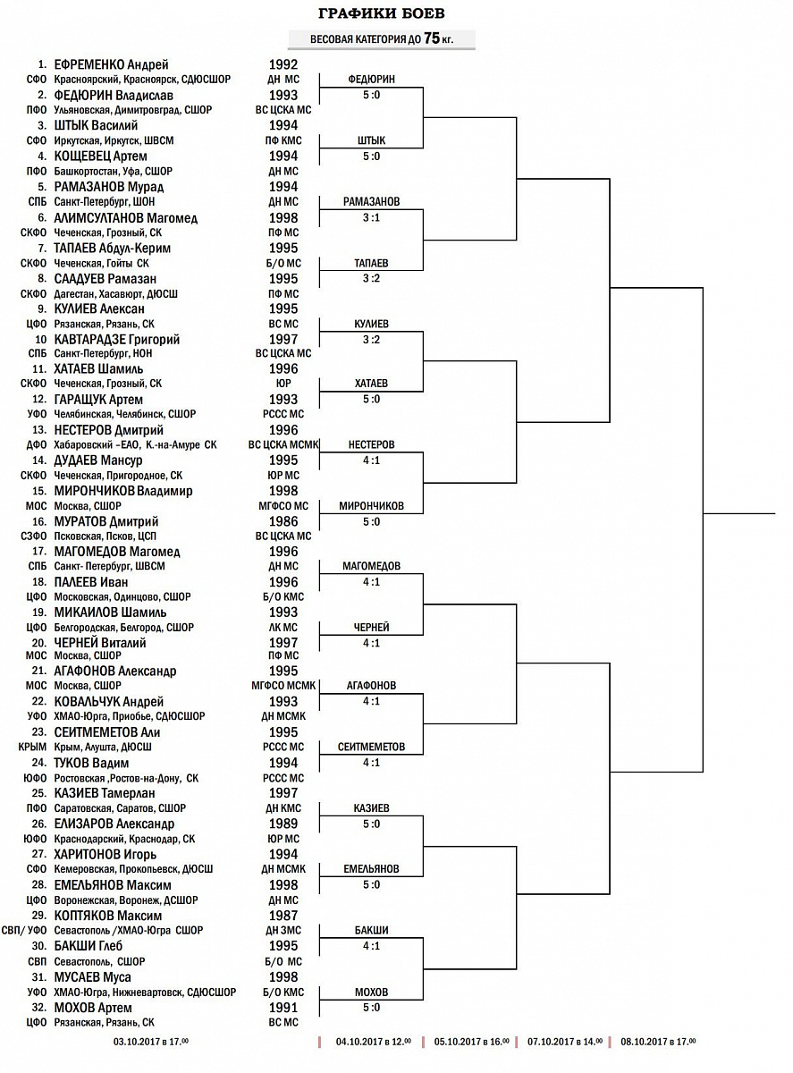 ЧЕМПИОНАТ РОССИИ ПО БОКСУ СРЕДИ МУЖЧИН. РЕЗУЛЬТАТЫ БОЕВ ЗА 3 ОКТЯБРЯ