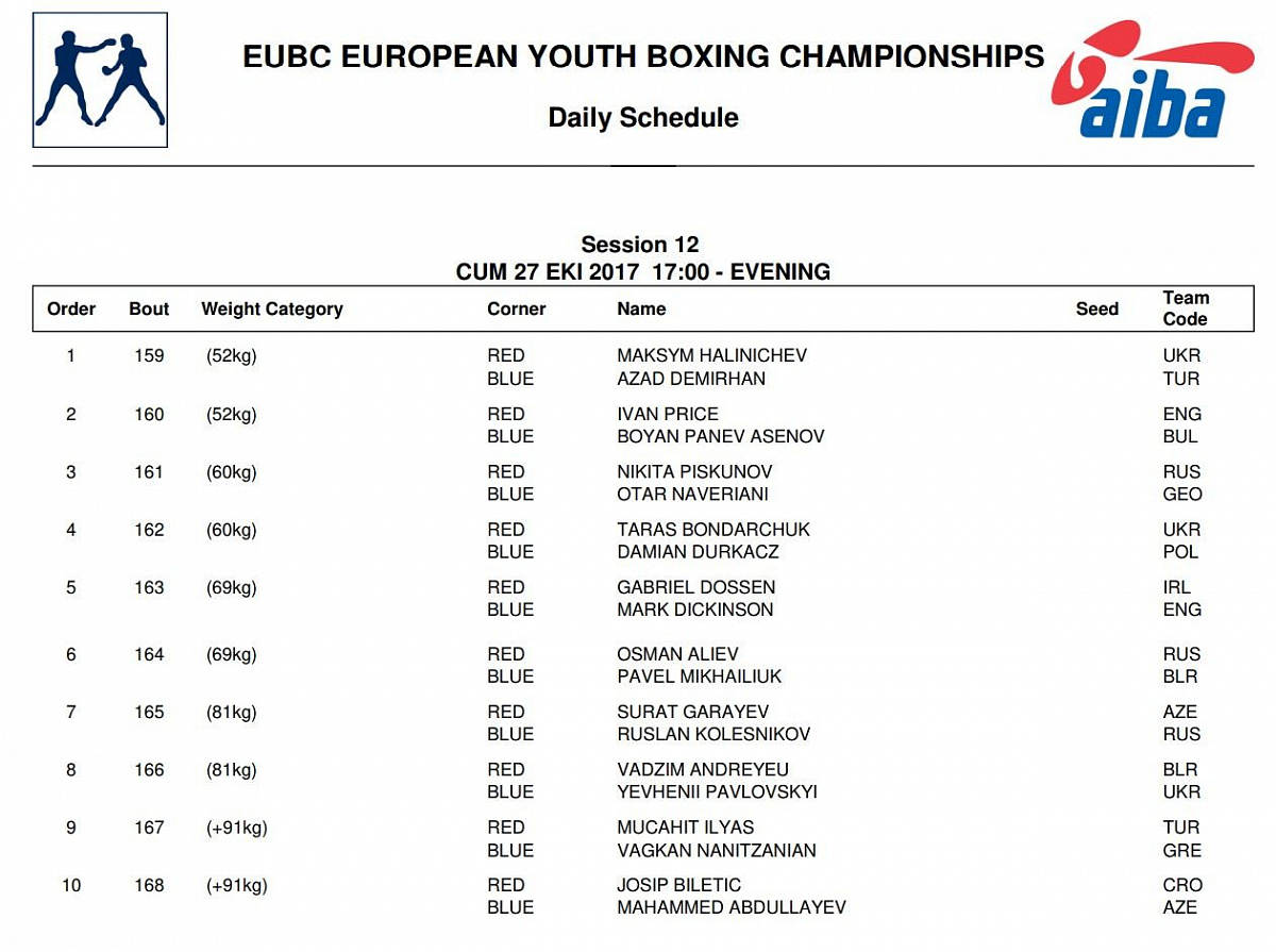 В пятницу, 27 октября в Анталии на первенстве Европы по боксу среди юниоров состоятся полуфинальные поединки. На турецкий ринг выйдут восемь российских боксеров. Наша сборная стала самой многочисленной на данной стадии соревнований. Следом идут Турция и Украина, у которых осталось по пять боксеров. Всего же в турнире приняли участие 33 страны и 199 спортсменов. Интересно, что единственный представитель Греции, Вагкан Нанитзанян (в/к +91), также добрался до полуфиналов.