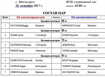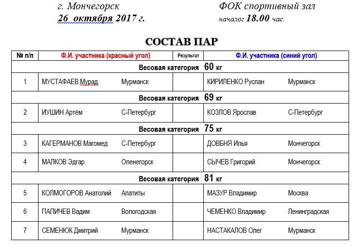 26 ОКТЯБРЯ СТАРТУЮТ ВСЕРОССИЙСКИЕ СОРЕВНОВАНИЯ КЛАССА "A" ПО БОКСУ ПАМЯТИ МЭРА Г. МОНЧЕГОРСКА И.Г. ЕРМАКОВА