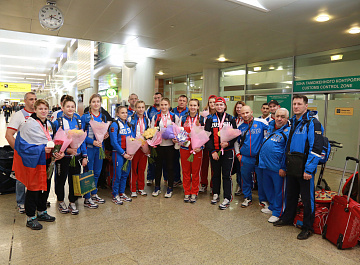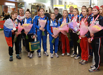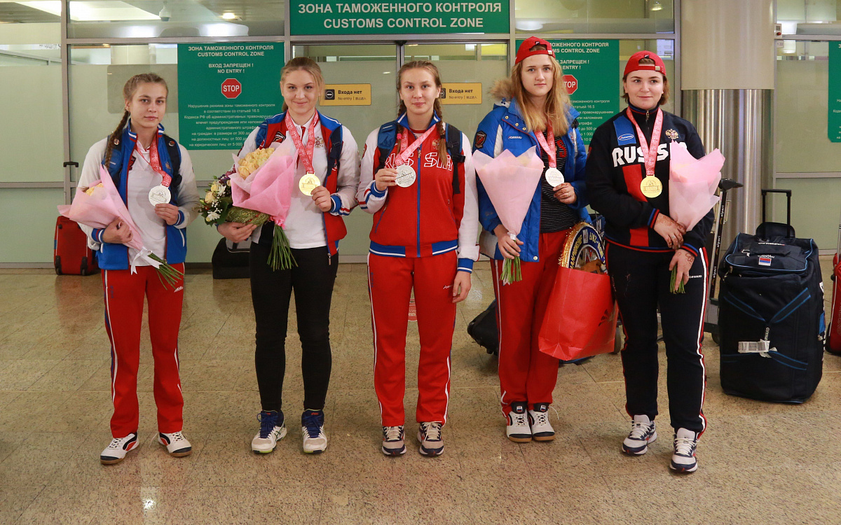 Триумфаторов соревнований торжественно встречали с цветами в Шереметьево. Получив поздравления, спортсменки разъехались по регионам.