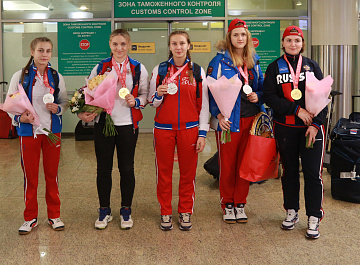 Сборная России вернулась в Москву с шестью медалями первенства мира среди юниорок 17-18 лет, которое прошло в Индии.