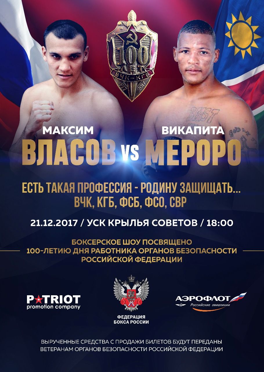 В главном бою вечера российский боксер первого тяжелого веса Максим Власов встретится с представителем Намибии Викапитой Мероро.