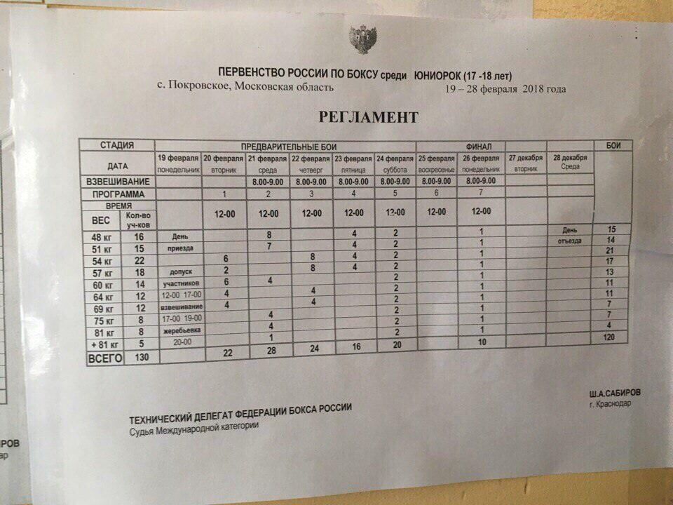 Публикуем регламент и состав пар на сегодня