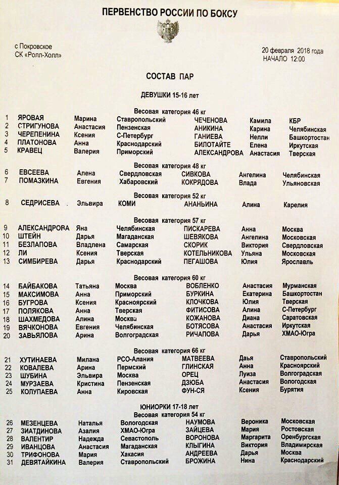 Первенство России по боксу среди юниорок 17-18 лет и девушек 15-16 лет