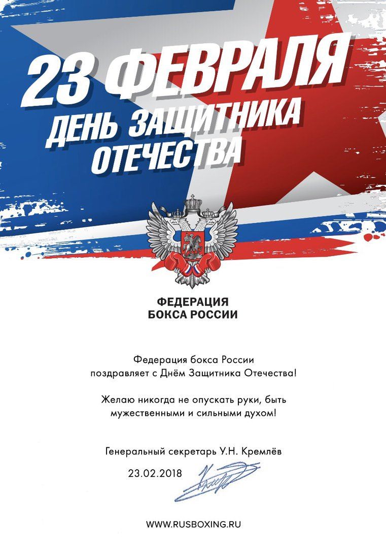 Федерация Бокса России поздравляет всех мужчин с Днем Защитника Отечества!