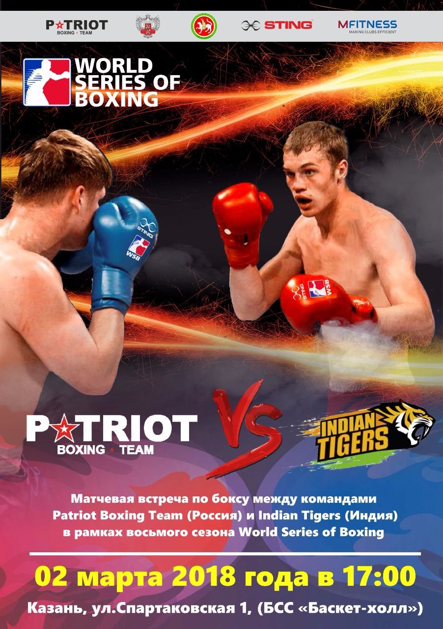 2 марта в Казани пройдет матчевая встреча по боксу между командами Patriot Boxing Team (Россия) и Indian Tigers (Индия) в рамках восьмого сезона Всемирной Серии Бокса (WSB).