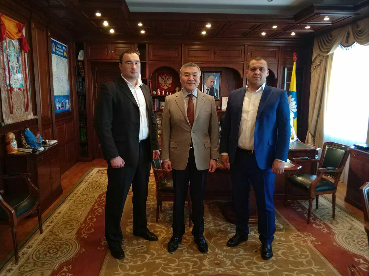 Сегодня в Элисте, Республика Калмыкия, генеральный секретарь Федерации Бокса России Умар Назарович Кремлёв провел совещание с главой Республики Калмыкия Алексеем Маратовичем Орловым и руководителем Федерации бокса Республики Калмыкия Анатолием Анатольевичем Сангаджиевым. В повестку дня вошли вопросы организации Чемпионата мира по боксу среди студентов, который пройдёт в Элисте с 31 августа по 8 сентября 2018 г., вопросы проведения Чемпионата России среди студентов, который состоится с 18 по 23 марта 2018 г., а также вопросы развития бокса в Республике Калмыкия и структуру дальнейшего взаимодействия Федерации бокса России с руководством Республики Калмыкия.