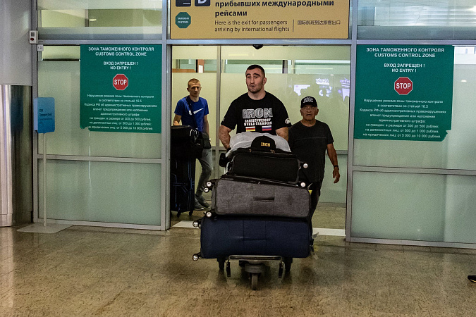 ФОТОГАЛЕРЕЯ. Встреча Мурата Гассиева в аэропорту перед финалом WBSS
