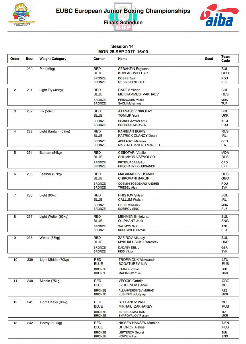Понедельник, 25 сентября. Первенство Европы по боксу среди юношей.
