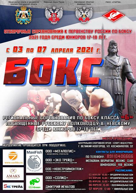Региональные соревнования по боксу класса "Б" посвященные А.Невскому среди юниоров 17-18 лет. Великий Новгород. День 3